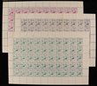 Burma: 1943 Farmer 15c magenta 20c grey-lilac & 30c deep blue-green, all FULL SHEETS of 50 with marg, each with lots of positional varieties. VF UN as issued, mostly very fresh JSCA 2B46-48 cat Y40,000+ = A$450+, SG J79-J81 cat £93++ as singles, plus premium for sheets which are great for specialists. (3 sheets = 150). |