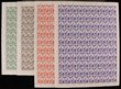 Burma: 1943 Elephant 20c yellow-green & 30c olive-brown, plus Watch Tower 1R red-orange & 2R bright violet all FULL SHEETS of 200 with marg each 2 panes of 100 with gutters. VF MUH, mostly very fresh. JSCA 2B67-70 cat Y130,000+ = A$1500+. SG J94-J97 cat £520+ as singles, plus premium for scarce gutter prs, & for full sheets which are very impressive. (4 sheets = 800). |
