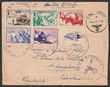 Laibach (Slovenia): 1944 Airmail set 25c-10L & Air Express 2L, plus Red Cross opt set 1.25L & 2.50L, tied to Registered Express Air cover by 'Laibach 12 IV 44' cds, plus special cachets & b/s. SG 84-E91 & 102-3 cat £2843 as loose stamps, Mi 21-30 cat €3200 for sets on cover. 1997 Raybaudi photo cert. (P)