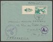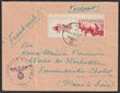 France - Russia: 1941 French Legion on Eastern Front Airmail set F (+10F) black & red & F+10 red & blue. On cover tied by 'Feldpost g 24 4 43' cds. To Paris with Censor type. Mi II & III. Maury 2-3 cat €600. Attractive & rare usage. (P)