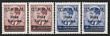 France - Russia: 1942 French Legion on Eastern Front set Airmail F (+10F) green & red & F+10 red & blue, both with OSTRONT opts shifted diag down, or left, plus 'F' broken at base (pos 1). VF fresh MUH. Maury 4 & 5g cat €132+, plus premium for variety. Mi IV & VPFIII cat €160, plus premium for shifted opts.