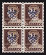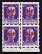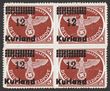 Latvia-Kurland: 1945 opt 'Kurland 12' on red-brown Eagle roul Fieldpost Parcel Stamp, variety opt greatly shifted left in blk of 4, plus with 'short foot 2' variety at UL. SG 4B(var). Mi 4BI(var). (4). (P)