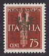 Laibach (Slovenia): 1944 Eagle opt Italy Air 75c, with variety 'squashed 'B' in Ljubljanska'. VF fresh MUH. SG 86(var), Mi 23III cat €220. (P)