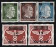 Latvia-Kurland: 1945 opt Hitler set 5/5pf, 5/10pf & 5/20pf, all opt type I, plus '12' opt Eagle perf & roul. VF fresh MUH. SG 1-3, 4A & 4B cat £289 for M, should be at least double, £578 MUH. Mi 1I-3I, 4A & 4B cat €250. (5). (P)