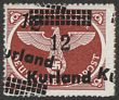 Latvia-Kurland: 1945 opt 'Kurland 12' on red-brown Eagle roul Fieldpost Parcel Stamp error opt DOUBLE, 2nd one diag. VF fresh MUH. SG 4Bb(var) cat £95 for M, should be at least double, £190 MUH. Mi 4BDDF cat €300 & undercatalogued as very rare. Exp van Loo BPP, plus 2024 Ceremuga photo cert. (P)