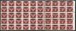 Latvia - Kurland: 1945 opt '12 Kurland' on red-brown Eagle roul Fieldpost Parcel Stamp reconstructed sheet of 50 (margin only at right). Left part of sheet is blk of 30 CTO 'Libau Deutsche Dienstpost 20.4.45' cds, right blk of 20 reconstructed from blk of 12 & 2 strips of 4 - all CTO 'Liepaja Latvija 20.4.45' cds. Normal opts (38) then all the opt varieties with type I 'small foot 2' (pos 37), type II 'bent foot on 2' (pos 40), type III '2 lower than 1' (pos 8 & 9), type IV '2 higher than 1' (pos 39), type V 'sloping foot of 2' (pos 1), type VI 'higher opt' (pos 49) & type VII 'printing spacer showing' (pos 20), type VIII 'dot on 2' (pos 21), type IX '2 broken base' (pos 3), type X 'd rounded at LR' (pos 29) & type XI 'broken 1' (pos 26). VFU/CTO. SG 4B(var) cat £1200+ as normal singles. Mi 4B I-VII cat €1455+ as singles, plus premium for rare reconstruction. (P)