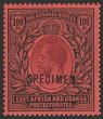 1912-21 KGV 100R purple & black/red opt SPECIMEN. VF fresh MLH. Scott 58s cat US$600. SG 62s cat £750 (normal cat £9500). (P) |