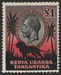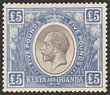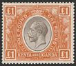 1922-27 KGV £1 black & orange. VFU, on piece with 'Mbara 21 NO 34 Uganda' cds. Scott 37 cat US$340+. SG 95 cat £325+. Scarce postally used. (P) |