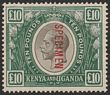 1922-27 KGV £10 black & green, opt SPECIMEN. Superb fresh MLH. Scott 41A cat US$1200. SG 100s cat £1200 (normal cat £15000). (P) |