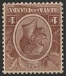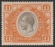 1922-27 KGV £1 black & orange. VF fresh MUH. Scott 37 cat US$230 for M. SG 95 cat £225 for M, should be at least double £450 MUH. (P) |