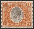 1922-27 KGV £1 black & orange. VF fresh MLH. Scott 37 cat US$230. SG 95 cat £225. (P) |