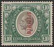 1922-27 KGV £10 black & green, opt SPECIMEN. Superb fresh MLH. Scott 41A cat US$1200. SG 100s cat £1200 (normal cat £15000). (P) |