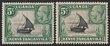 1935-37 KGV Dhow 5c black & green, type II ('rope joined to sail'), both perf 14 & perf 13x12. VF MLH. Scott 47a & 47c cat US$918. SG 111a & 111ba cat £895. Rare. (2) (P) |