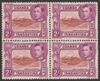 1938-54 KGVI Mount Kilimanjaro 2/- lake-brown & brown-purple blk of 4, perf 13 ¼. VF fresh MLH. Scott 81a cat US$480 for singles. SG 146 cat £720 for singles plus premium for scarce multiple. (4). (P) |