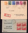 Allied Zones: 1945-52 Postal History inc Anglo-US Zones Monogram ex 4pf-25pf to Switzerland. 1946 Numerals 10pf & 15pf. 1948 Buildings ex 2pf-24pf. Berlin inc 1948 black opt 25pf on Berlin Airlift cover, 1950 Airmail franked UPU 24pf & Tax Stamp, 1951 Bells clapper right 10pf & 20pf & finally West Germany 1952 Otto 30pf. SG cat £155 as loose stamps alone. (7).