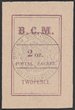 1884 BCM 20z Postal Packet 2d magenta with black British Vice-Consulate cachet. Superb fresh UN, 4 huge margins. Scott 2 cat US$375. SG 6 cat £450. (P) |