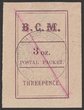 1884 BCM POSTAL PACKET' 3d magenta, with British Vice-Consulate cachet. VFU, red crayon cancel, usual tint thins. Scott 3 cat US$350. SG 7 cat £350. (P) |