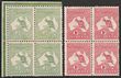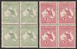½d Green UL cnr blk of 4, 1d carmine Die IIA blk of 4. F-VF UN. SF 1 & 2e cat £176. ACSC 1 & 4 cat $380 as M singles. (8)