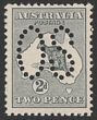 2/- Brown perf small OS. FU. SG O26 cat £200. ACSC cat $400. (P)