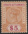 1892-99 QV Tablet $5 orange & carmine. VFM. Scott 88 cat US$500, SG 105 cat £475. (P) |