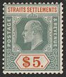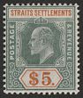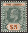1904-10 KEVII $5 dull green & brown-orange on chalk-surfaced paper, wmk Mult Crown. VF fresh MLH. Scott 127 cat US$325. SG 138b cat £350. (P) |