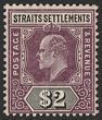 1904-10 KEVII $2 dull purple & black on chalk-surfaced paper, wmk Mult Crown. F-VF fresh M. Scott 125 cat US$120. SG 137 cat £140. (P) |