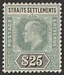 1904-10 KEVII $25 grey-green & black. Superb fresh M with nice original gum & excellent centring. Scott 128A cat US$3600. SG 13a cat £3500. Very rare in genuine mint condition & certificate can be obtained on request. (P) |