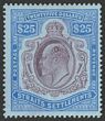 1906-12 KEVII $25 purple & blue/blue. VF fresh MLH with nice original gum & excellent deep colour. Scott 145 cat US$3600. SG 168 cat £3750. Very rare genuine mint. 2002 Ceremuga photo-cert. (P) |