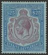 1921-33 KGV $25 purple & blue/blue, wmk Mult Script. Superb fresh MLH, with nice original gum & excellent colours. Scott 202 cat US$1450. SG 240b cat £1500. Rare mint high value. (P) |