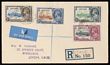 1936 Registered cover franked KGV Silver Jubilee set 1d to 1/- tied by 'Registered Sekondi Gold Coast 8 JAN 36' pmks. To London. SG 113-116 cat £80 as loose stamps & 'from x3' on cover.