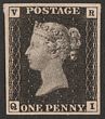 1840 Official QV 1d grey-black, 'V R' in upper corners, lower letters QIL, variety 'comma inside Q'. Superb fresh UN, 4 large even margins, nice deep color & impression. Scott O1 cat US$23,000. SG Spec VR1. SG V1 cat £25,000 & undercataloged relative to other GB material. Very rare genuine example as this stamp was prepared but unissued with almost all stock then being officially destroyed. Beautiful quality example of this important classic. 1992 RPSL photo-cert. (P) |