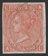 1865-73 QV 4d vermilion, large white cnr letters LA-AL, plate 11, IMPERF, wmk large garter INVERTED. VF fresh UN, insignificant scuffing in upper edge only, 4 large margins & bright colour. Scott 43b cat US$7750, SG Spec J58a, SG 94a cat £7000. Extremely rare imperf error. (P) |