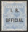 1867-83 QV 10/- greenish-grey, letters FC-CF, wmk Large Anchor, white paper. FU, sl LR cnr crease, barred oval pmk, nice perfs. Scott 91a cat US$4675. SG 135 cat £4250. Scarce stamp. (P) |