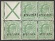 1902-10 KEVII 4d green & grey-brown, DLR printing, SPECIMEN opt (SG type 16). Superb fresh MLH. SG 235(s). SG Spec M23s cat £450. Rare genuine. 2021 Ceremuga photo cert (P) |