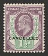 1902-10 KEVII 1½d Slate-purple & bluish green on chalk-surfaced paper, DLR printing opt CANCELLED (SG type 18) being special specimen ex DLR archives. Superb fresh MLH. SG 224(2)(var). SG Spec M9t cat £1800. Major rarity as only several recorded. 2021 Ceremuga photo cert. (P) |