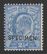 1902-10 KEVII 2½d ultramarine DLR printing opt SPECIMEN. (SG type 15). VF fresh M. SG 230s, SG Spec M16s cat £125. Scarce. 2021 Ceremuga photo cert. (P) |