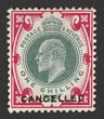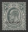 1902-10 KEVI 1/- dull green & scarlet on chalk-surfaced paper, DLR printing, opt CANCELLED (SG type 18) being special specimen ex DLR archives. Superb fresh M. SG 259(s)(var). SG Spec M46t cat £1800. Major rarity as only several recorded. 2021 Ceremuga photo cert. (P) |