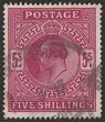 1902-10 KEVII 5/- bright carmine, DLR printing. VFU, W/C & nice colour. Scott 140 cat US$220. SG 263 cat £150. |