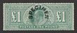 1902-10 KEVII £1 dull blue-green, DLR printing. VFU, Registered pmks. Scott 142 cat US$825. SG 266 cat £700. (P) |