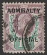 1903 'ADMIRALITY OFFICIAL' opt KEVII 1½d dull purple & green, opt SG type O10. VFU. Scott O74 cat US$170, SG Spec MO32. SG O103 cat £110. Scarce genuine. (P) |