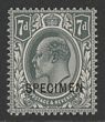 1911-13 KEVII 7d slate-grey, Somerset House printing, opt SPECIMEN (SG type 26). Superb fresh MLH. SG 305(s). SG Spec M38s cat £350. Rare. 2021 Ceremuga photo cert. (P) |