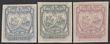 Circular Delivery Company: Edinburgh & Leith 1865 Arms ¼d slate-blue, ¼d olive-grey & ¼d dull mauve, imperf. Superb fresh MUH, all 4 margins. SG CD7, 9-10 cat £58 for M, should be at least double, £ £116 MUH. (3) |