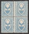Circular Delivery Company: Edinburgh 1866 Clark & Co (¼d) blue, se-tenant blk of 4, 2 diff sizes, left stamps 25mm wide & right 23½mm. VF MUH. SG CD3 cat £140 for M, should be at least double, £280 MUH. Very scarce. (4). (P) |