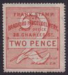 Locals: Bradford Parcel Delivery 1874 2d red Frank Stamp, perf 13½. Fresh UN, sm thin. RL 2. Extremely rare. (P) |