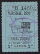 Locals: Manchester Parcel Delivery ca1890 3d blue, Frank stamp, inscribed 'Chief Office 32a Fountain St J Burgess', perf 12. VFU, tiny tear, m/s signature cancel. RL 3. Very rare. |