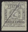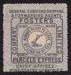 Locals: (London) Foster's Parcels Express Co Ltd. 1874 (no value) black on grey, perf 12½, inscribed 'Always Ready To Serve By Land Or Sea'. VFM. RL 2. Extremely rare. |