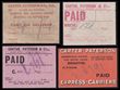 Locals: (London) Carter, Paterson & Co Ltd range inc 'Cash On Delivery' label red on buff, 'Paid' label red on white 'Paid' black on pink, 'Islington Paid' black & white on red, 'Islington Nelson Terrace NI' black & white on red, 'Brighton The Drive Paid' both white & black on red. Also Circular labels (2), 1 inscribed 'Brighton The Drive Home' & the other 'Paid Central St E.C.E', plus 2 rectangular labels, 1 inscribed 'Islington' & the other 'Central Street', both red & green with black inscriptions. All diff. All U. Unlisted in RL. Extremely rare group. (11). (P) |