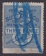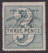 Locals: Manchester Sutton & Co 1890s 3d bluish-green Frank Stamp 'J Burgess' inscribed 'Chief Office 32a Fountain St'. U, flts, blue crayon cancel. RL unlisted. Extremely rare. |