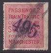 Locals: Manchester Sutton & Co 1890s 'Passenger Train Traffic' red label, dark violet control no.495. VFU, black crayon cancel. Extremely rare. |