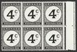 1952 Postage Due 4c black right marginal blk of 6, top middle stamp error 'missing crown in wmk' Stamps fresh MUH. SG D16/D16a cat £181+ as singles, plus premium for positional blk should be +50%, so est cat £270+. (P)